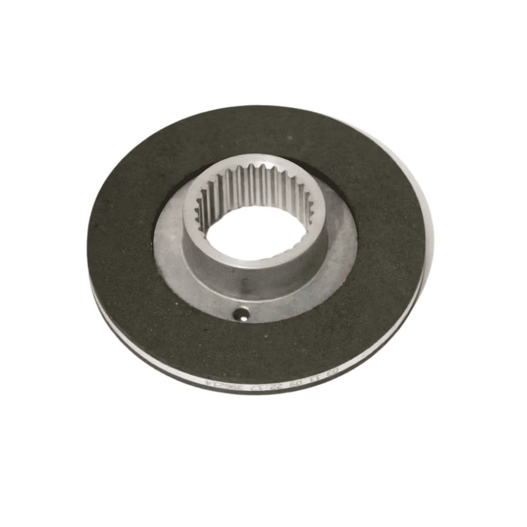 Função Principal: O disco 2720707-00 é o elemento de sacrifício no sistema de freio eletromagnético. Quando a bobina do freio é desenergizada (ou a máquina para), molas de pressão empurram uma placa contra este disco, travando o motor por fricção. É o que garante que a máquina pare com precisão e permaneça imóvel em rampas.