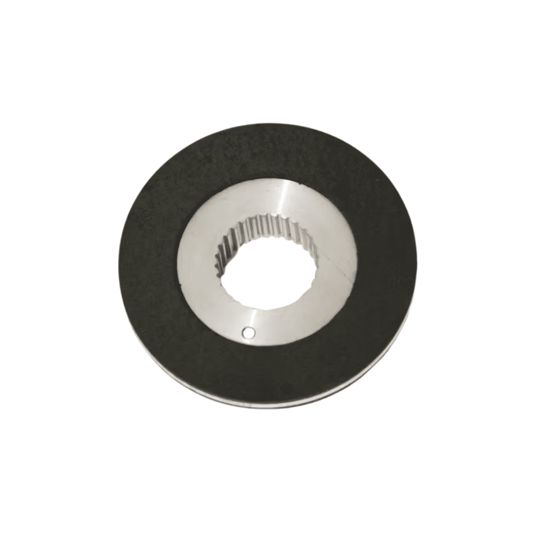 Núcleo Estriado: Possui um centro com dentes (estrias) para encaixe no eixo do motor, permitindo que o disco deslize axialmente para engatar e desengatar.