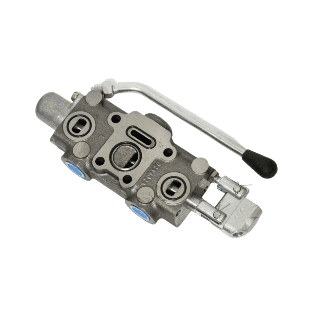 Funcionamento: Dentro da fatia 809797F, existe um carretel (spool) que, ao ser movido pela alavanca do operador, direciona o fluxo de óleo sob pressão para o cilindro correspondente, determinando a direção e a velocidade do movimento.