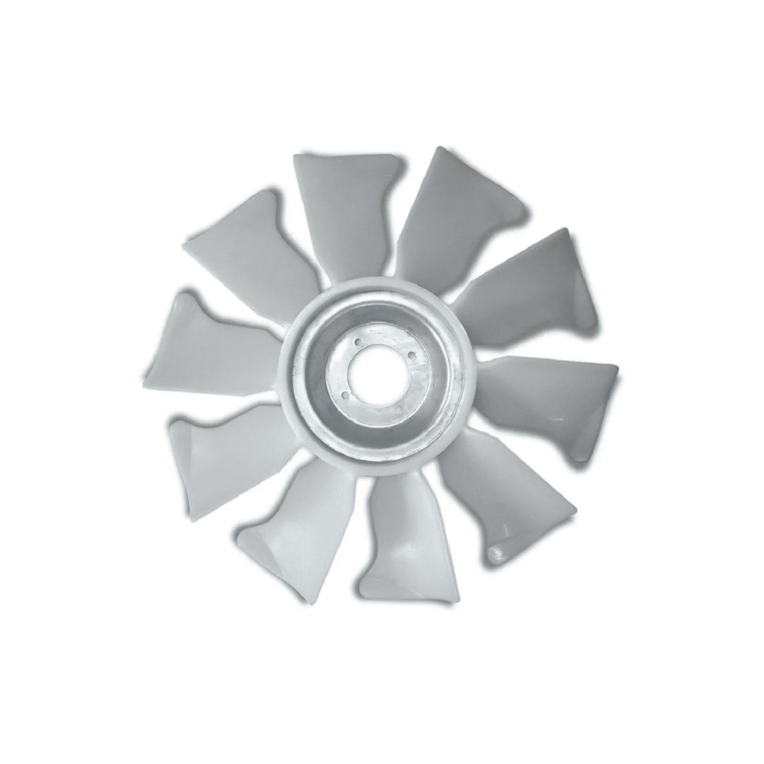 Função Principal: A hélice 9130100200 é responsável por forçar um grande volume de ar através das colmeias do radiador. Com suas 10 pás, ela é projetada para maximizar o fluxo de ar (CFM), garantindo que o líquido de arrefecimento e o óleo hidráulico/transmissão sejam resfriados rapidamente, mesmo quando a máquina trabalha em rotações constantes.