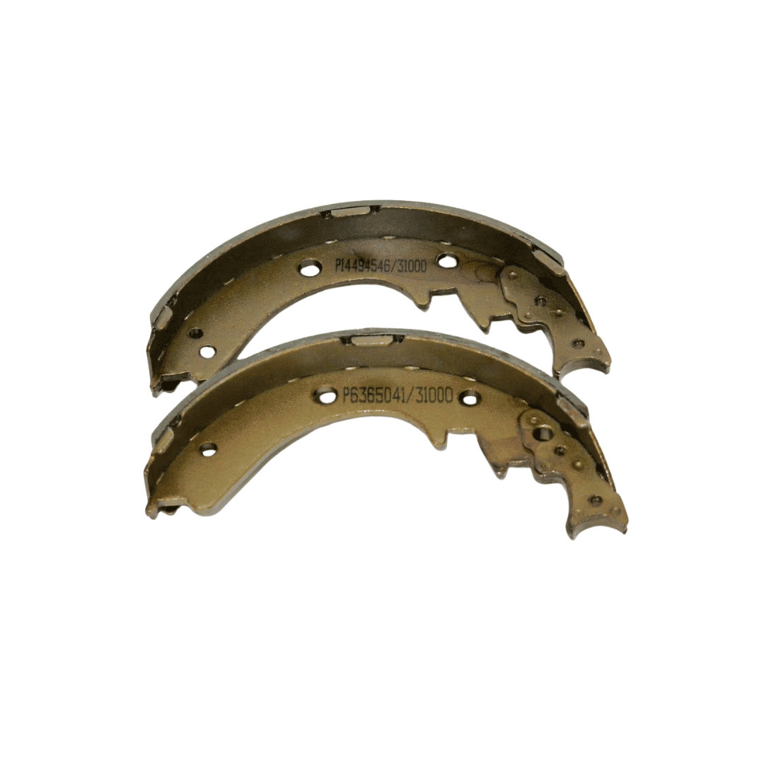 Função: As sapatas de freio fazem parte do sistema de freio a tambor. Elas possuem lonas (material de fricção) rebitadas ou coladas à sua estrutura metálica. Quando o operador pisa no freio, o cilindro de roda força essas sapatas a se expandirem contra a superfície interna do tambor de freio, gerando o atrito necessário para desacelerar ou parar o veículo.